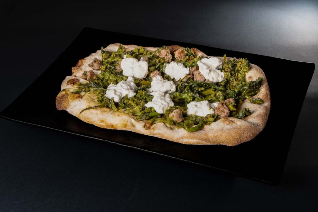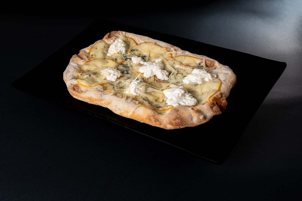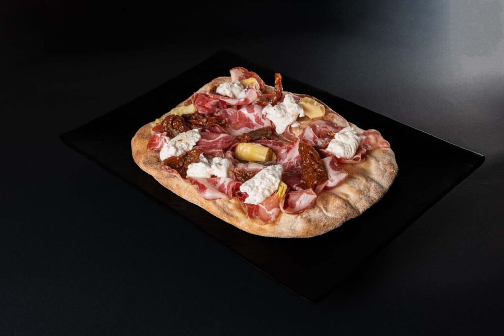 (pomodoro secco sott’olio, gorgonzola, cipolla caramellata e rucola)