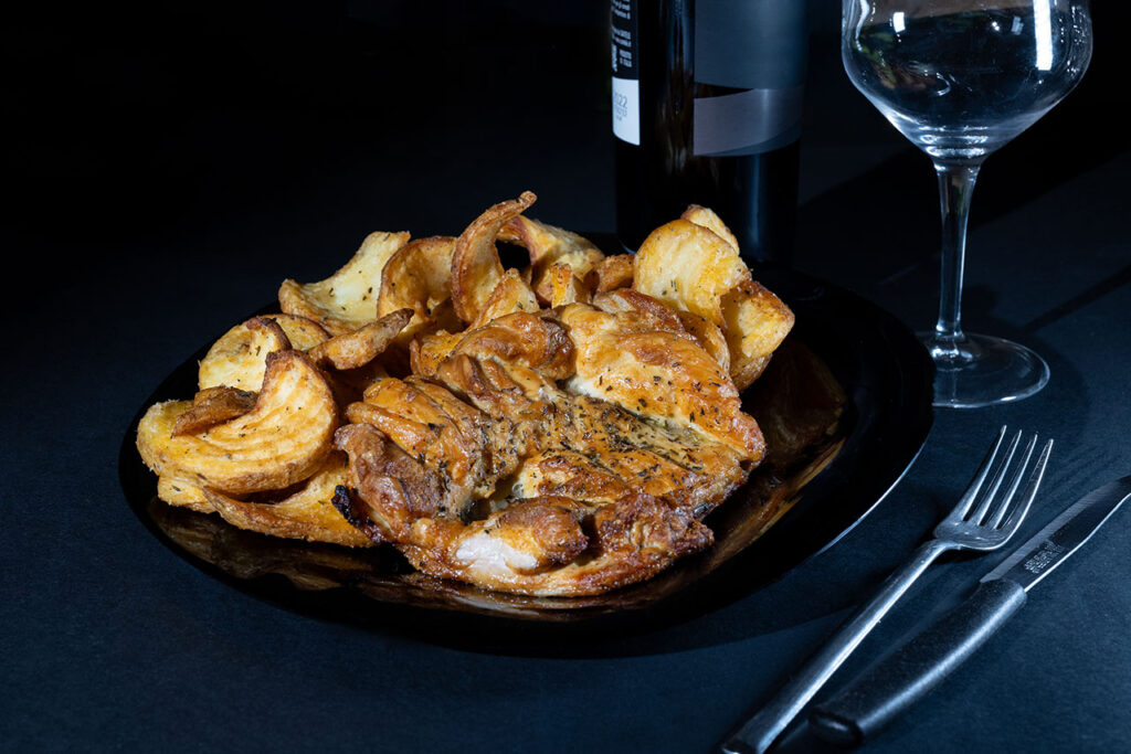 - Patate al forno con erbette miste / chips cacio e pepe1,00 €