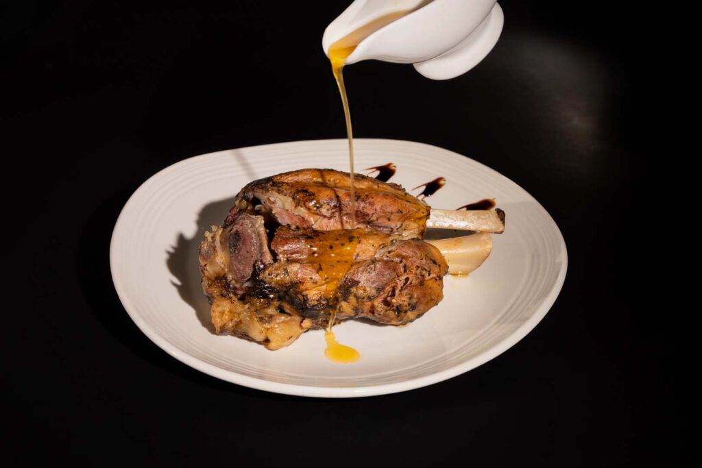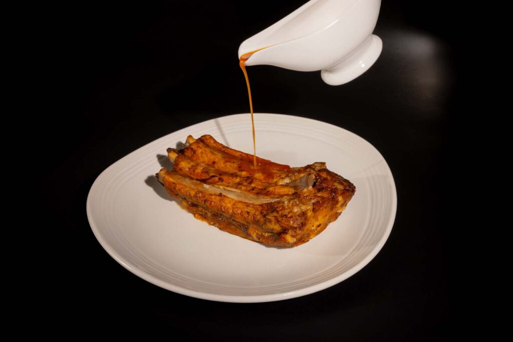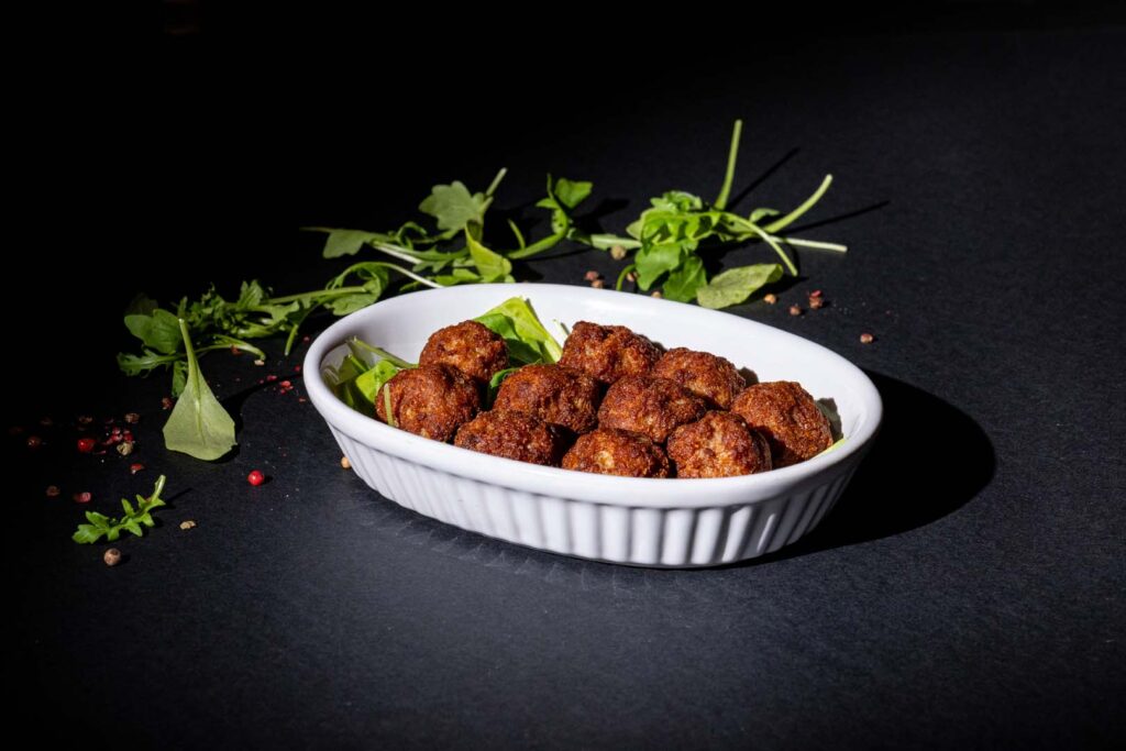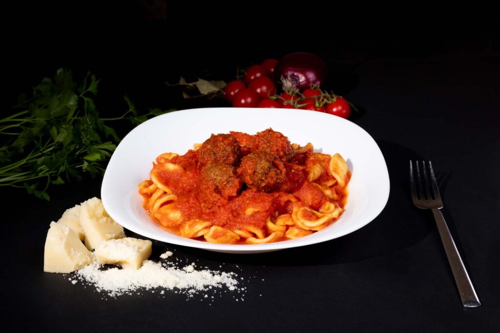 (polpette al sugo, patate al forno, rape, scaglie di grana)